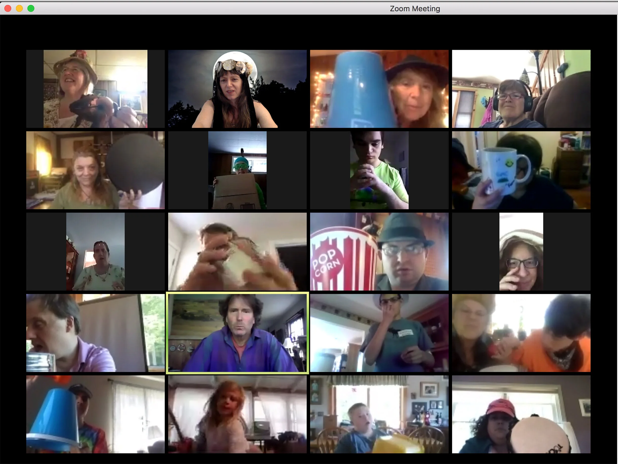 Exploring scenic art from the perspective of one's performing window--- while we are online--- is a new form of theater art for us. Learning to think about what is behind us in our performing space, learning to consider the best lighting, and then also playing with color by what we choose to wear and how that impacts the visuals of our windows---well, we are in a new frontier for sure!